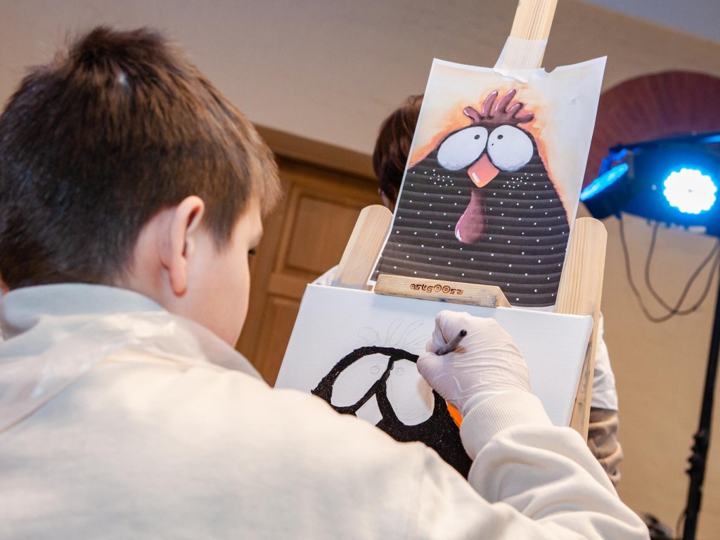 Затем дети приняли участие в мастер-классе по живописи, где под руководством художников смогли попробовать себя в творчестве. Многие из детей впервые держали в руках масляные краски.