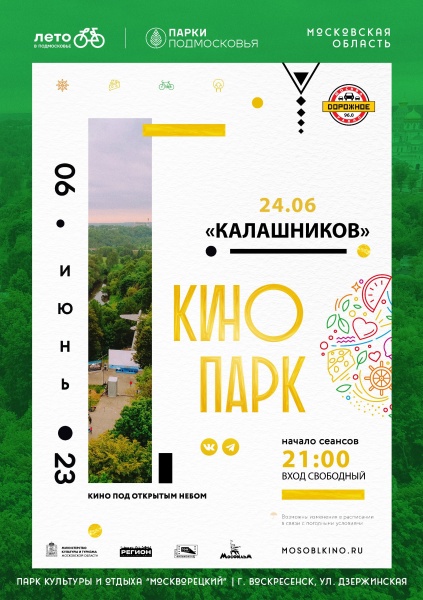 В рамках проекта «Лето в Подмосковье» в парке состоится кинопоказ художественного фильма «Калашников» под открытым небом.