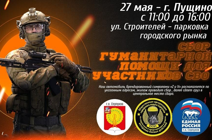 Мобильный пункт сбора гуманитарной помощи для участников СВО будет работать в Пущино 27 мая