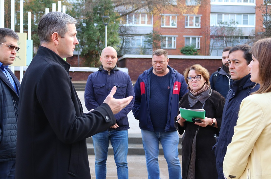 Было проверено качество выполнения работ по мощению тротуаров, облицовке подпорных стен клинкерной плиткой, установке опор освещения.