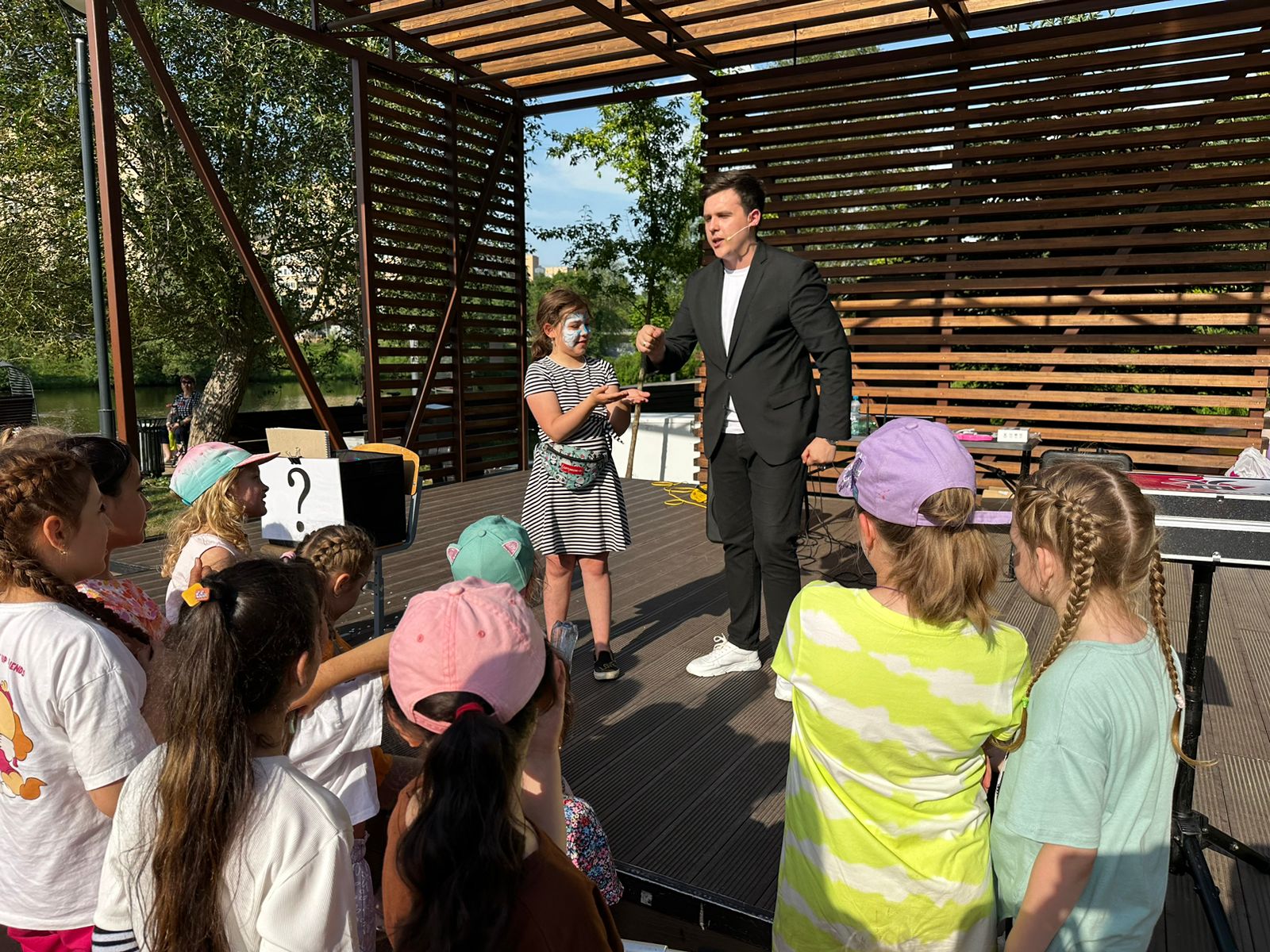 При поддержке представителей Молодежной палаты поселения, членов Совета депутатов и сотрудников администрации были организованы мастер-класс по аквагриму, кросс, танцы и выступление фокусника. Также юные гости мероприятия выигрывали призы: за правильно разгаданную загадку от ведущего девочки и мальчики получали в подарок кольца и игрушечные машинки.