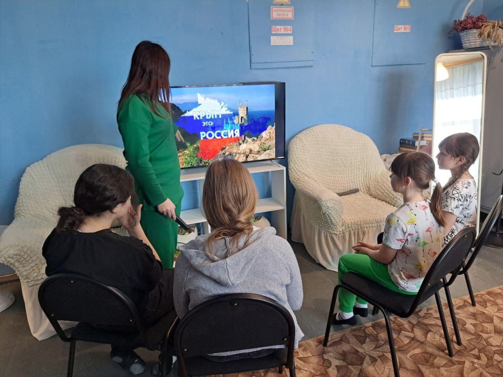 В преддверии 10-й годовщины воссоединения Крыма с Россией в Зареченском сельском доме культуры прошел тематический обзор с видеопроекцией «Крым — частичка России».