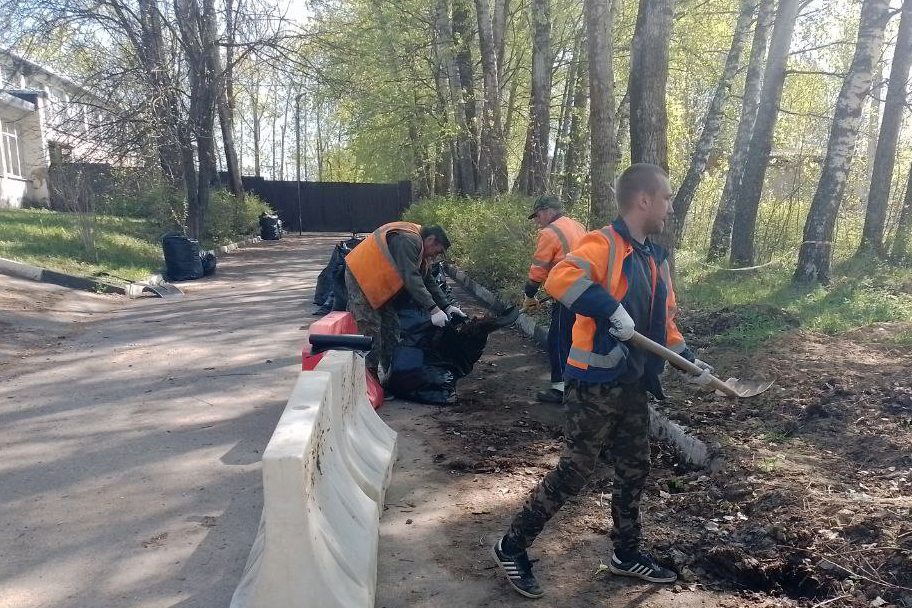 Также рабочие наводили чистоту на игровом комплексе в деревне Комлево.