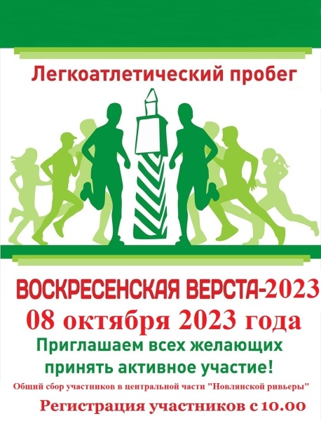 8 октября 2023 года в микрорайоне Новлянский города Воскресенска состоится легкоатлетический пробег "Воскресенская верста" по адресу: Московская область, г. Воскресенск, ул. Новлянская, зона отдыха на набережной реки Москвы.