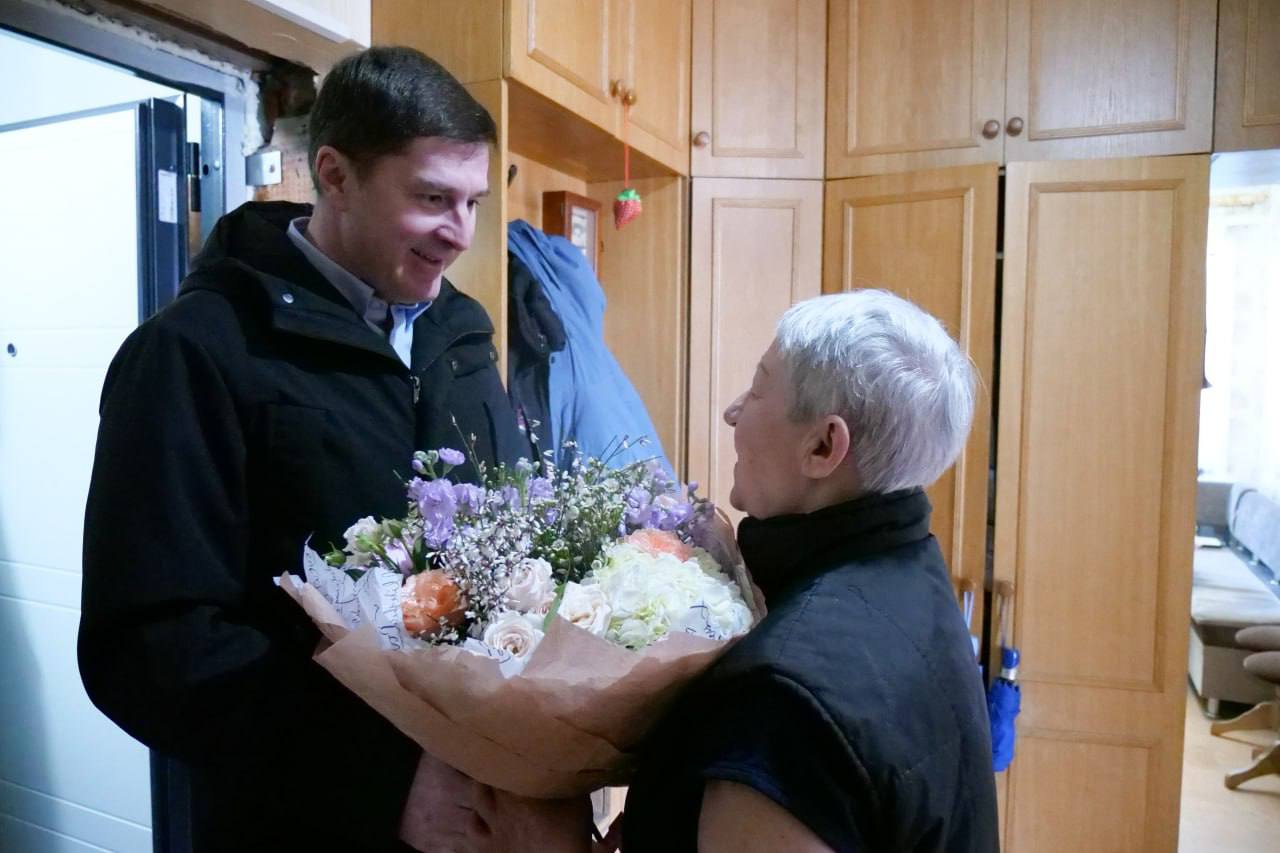 Глава городского округа Люберцы Владимир Волков вместе с представителями управляющей компании навестил жительницу Малаховки Татьяну Григорьевну, проверил качество выполненных работ по ремонту крыши и поздравил ее с наступающим Международным женским днём.