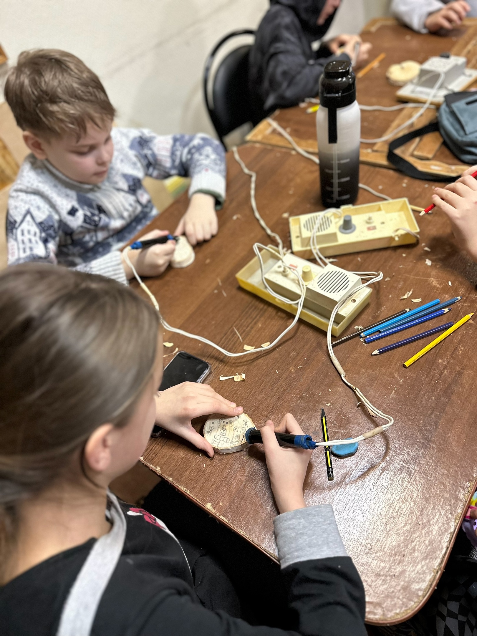 «Рождественская пора несёт в себе немного волшебства и тайны. С ребятами мы решили запечатлеть этот зимний праздник на наших поделках. Сами отпиливали заготовки, на которых мы изобразили разные рождественские сюжеты, выжгли их и разукрасили. Кто-то повесит поделку на ёлку, а кто-то будет носить в виде медали», — рассказал Александр Алексеевич.