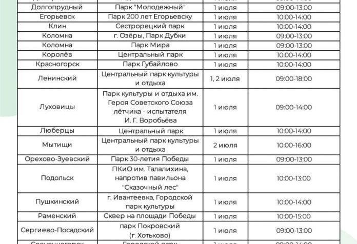 1 и 2 июля бригады врачей будут работать в 24 парках региона. Где и когда их искать, смотрите на картинке.